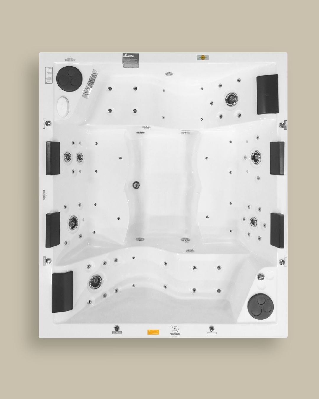 Jatos complementares de Air Blower que proporciona o efeito champagne na água garantindo uma massagem super relaxante.