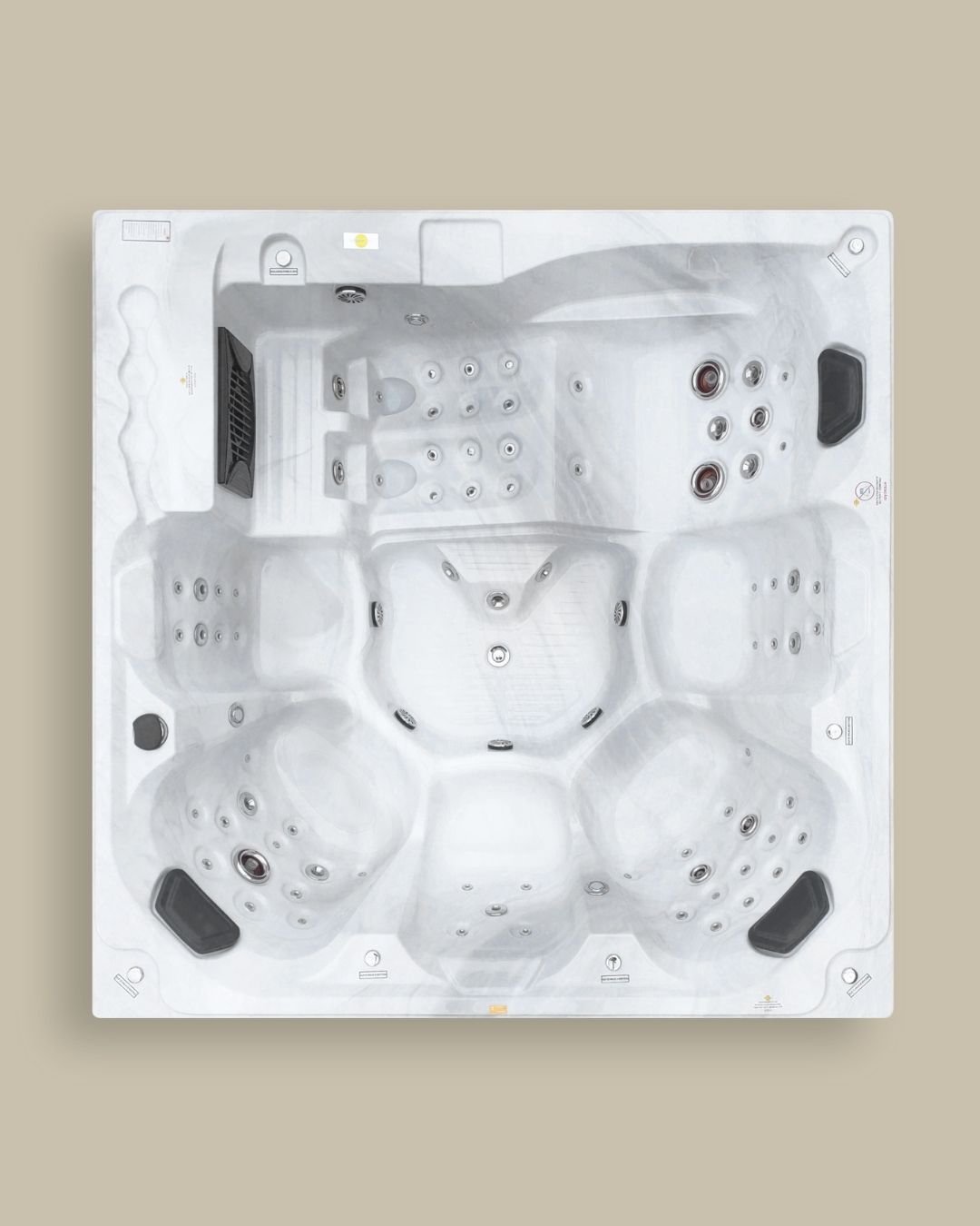 Cada assento uma distribuição de jatos para proporcionar diversas possibilidades de experiência, inclusive com controle de fluxo e abertura individualizada, bem como a mais robusta motobomba do mercado – uma exclusividade Amazon Spa focada em seu bem-estar.